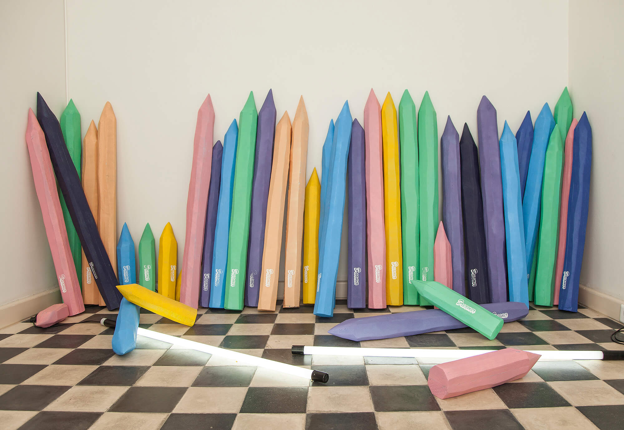The Dreamer pencils are made by styrofoam, the building material to sound proof walls and all of them are of different length. The biggest of them is 1.70 meters long, while the smallest one is just 30 centimetres.